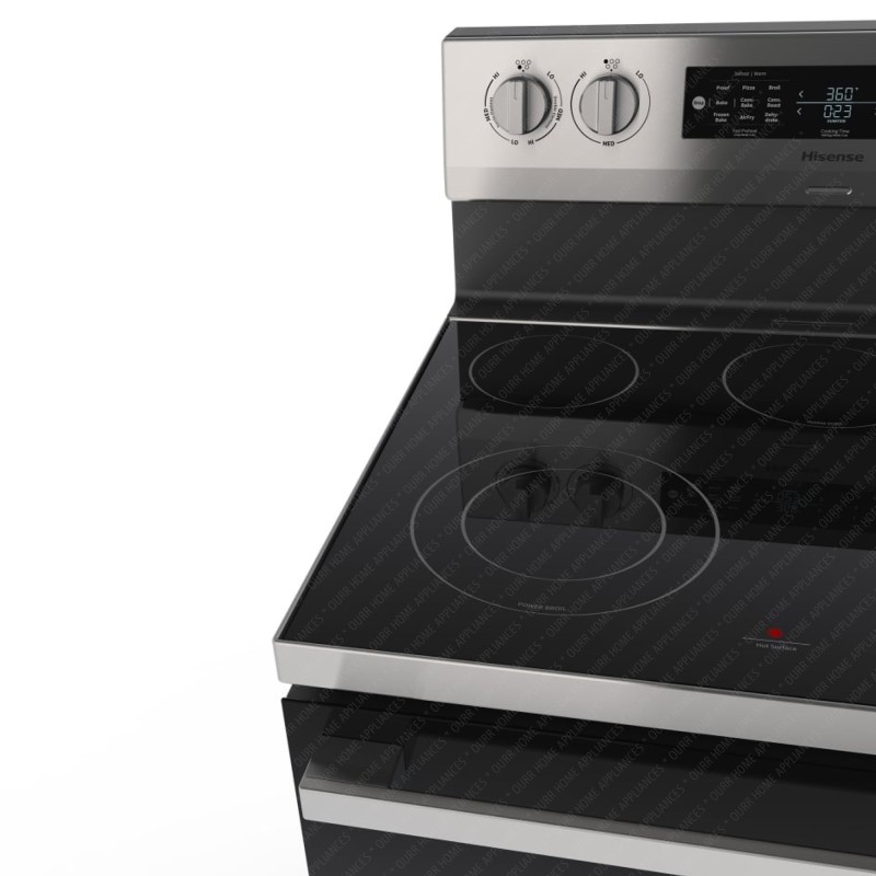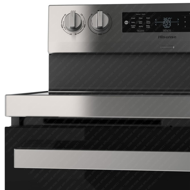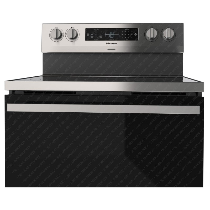 Hisense HBE3502CAS Electric Range, 5.8 cu. ft. Capacity, 30 inch Exterior Width, True Convection, 5 Burners, Storage Drawer, Air Fry, 3,300 Watts Highest Burner Element, Stainless Steel colour